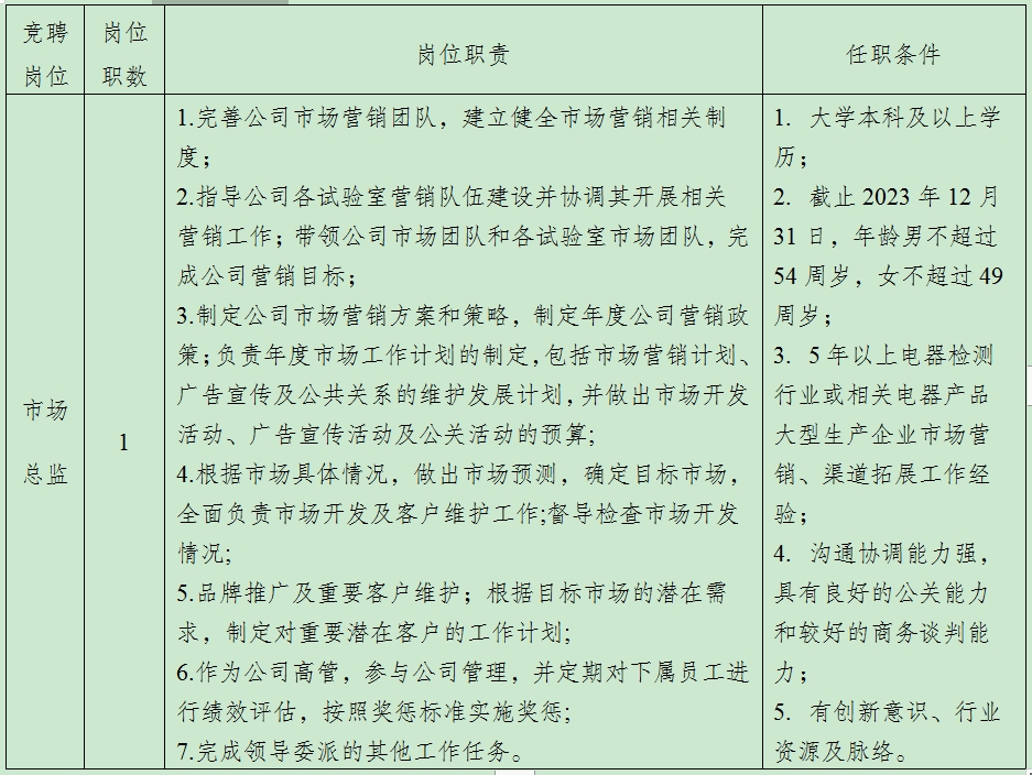 湖南電科院檢測集團有限公司招聘簡章——市場總監(jiān)