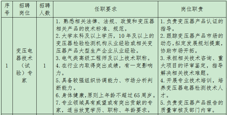 現(xiàn)根據(jù)公司經(jīng)營發(fā)展需要,面向社會招聘變壓電器技術(shù)(試驗)專家、高壓技術(shù)(試驗)專家,有關(guān)事項通告如下。